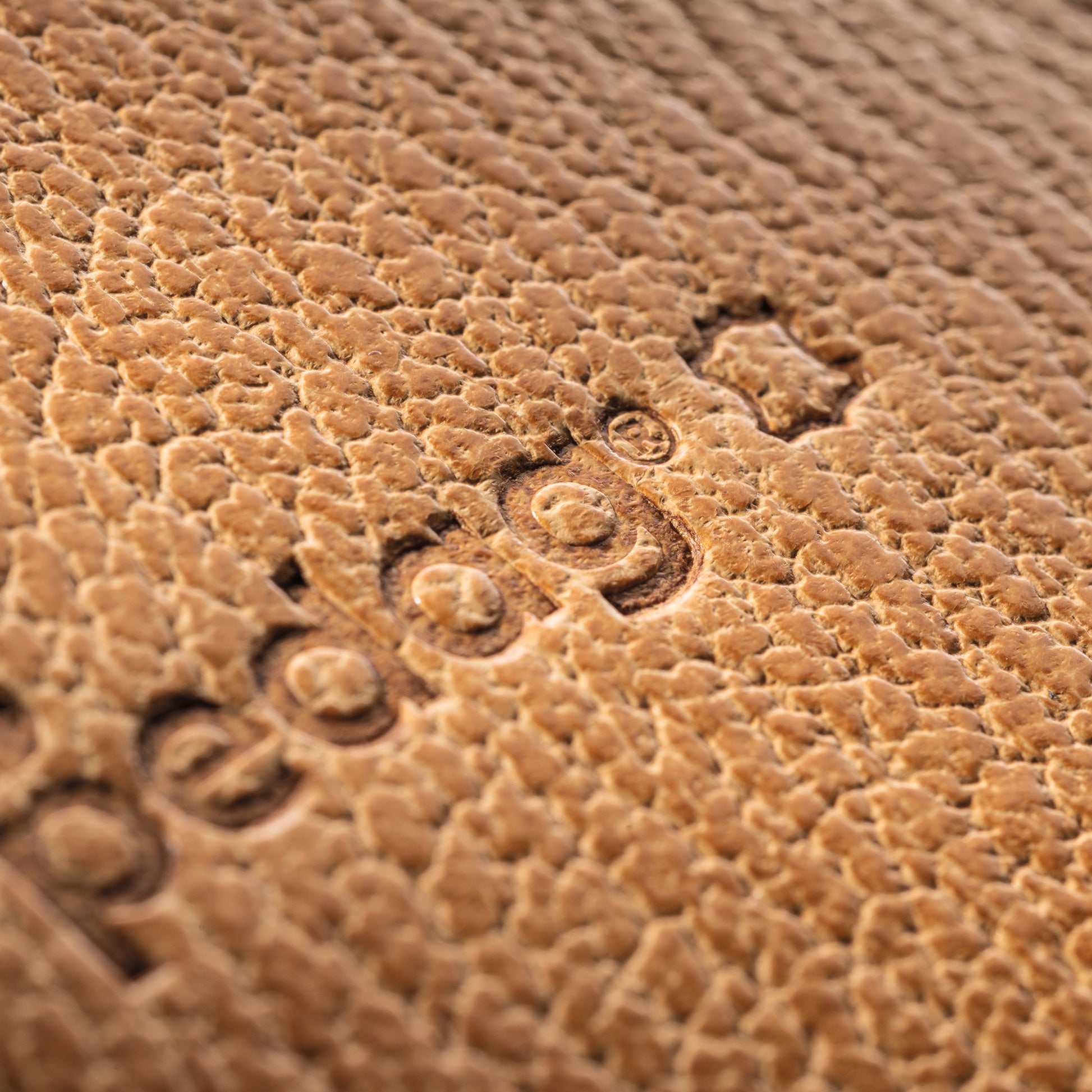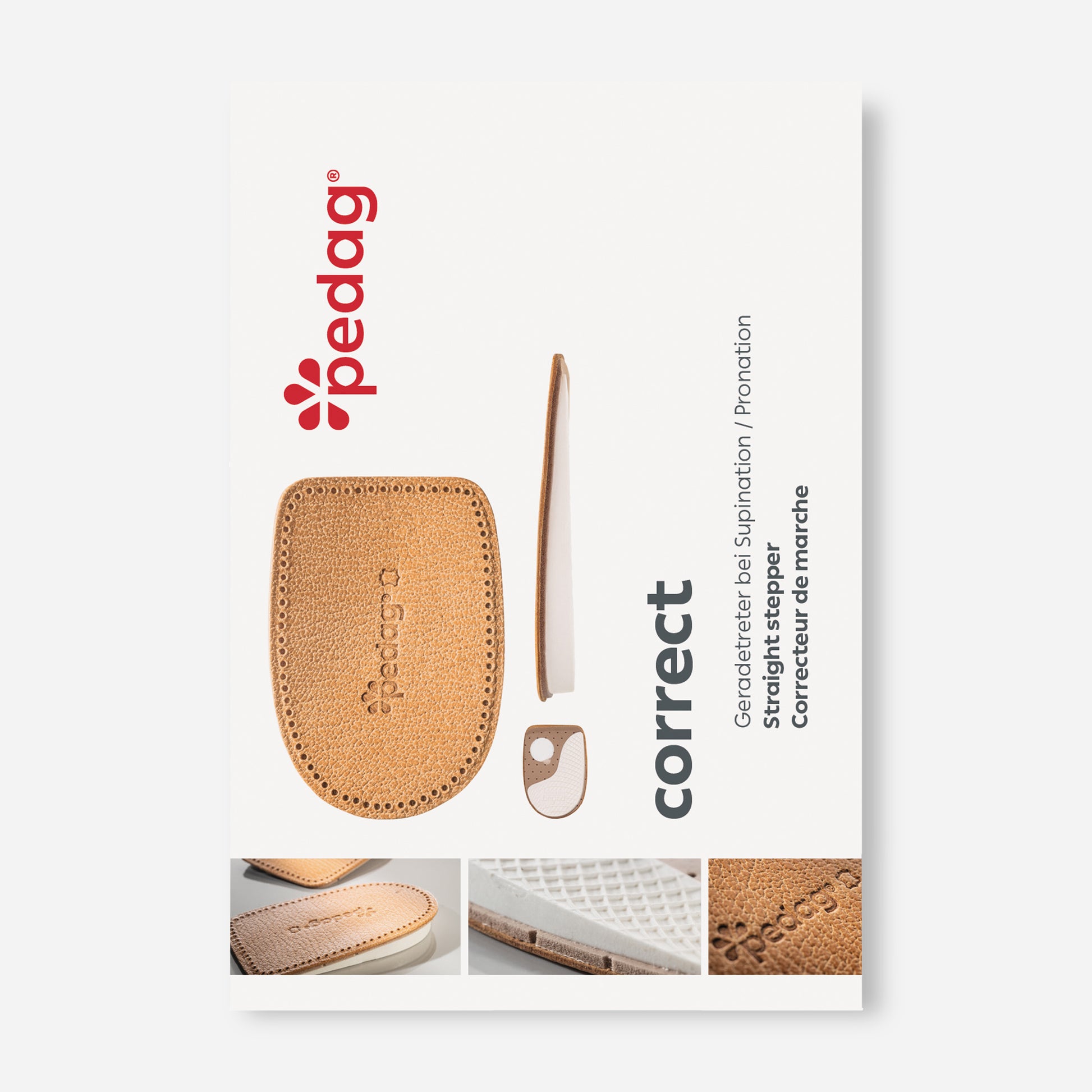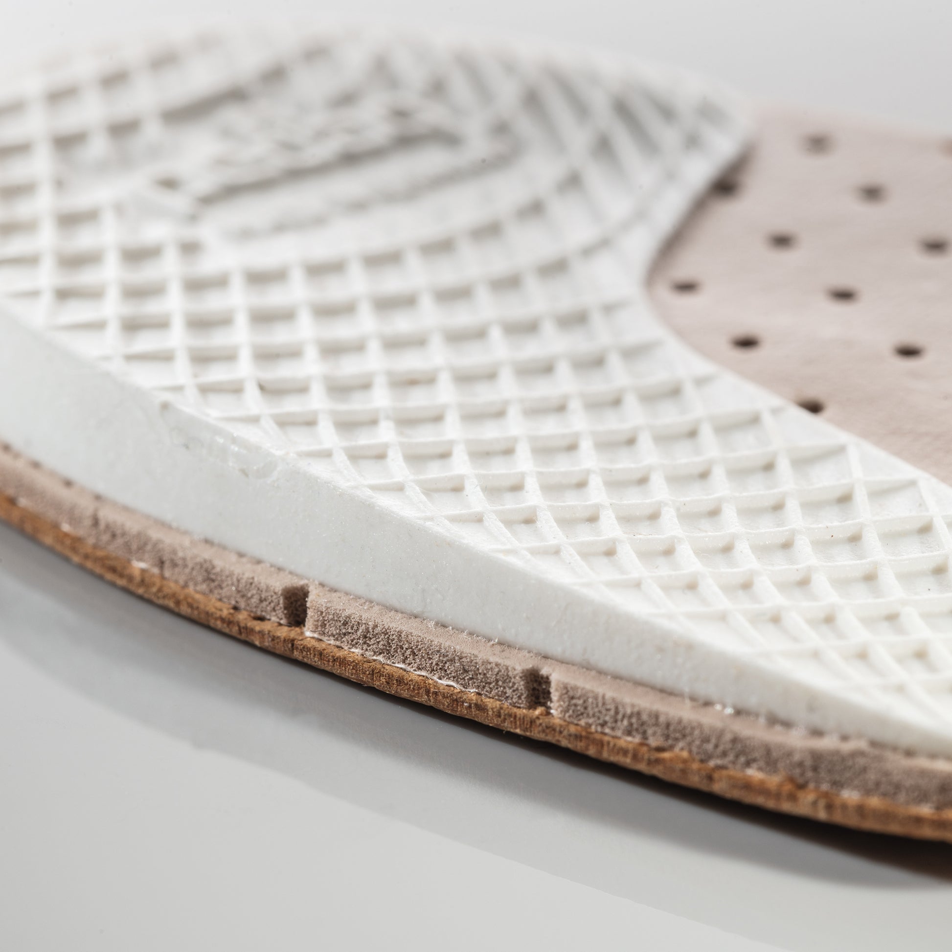 解剖学に基づいて設計された、かかとの片減り予防、O脚・X脚歩行対策インソール。外側を高く、内側を低く傾斜をつけた構造で、外側に偏った重心を自然に内側加重にサポートします(O脚歩行対策に使用される場合)。・本革製・接着シール付※シールの接着力が低下するため貼り直しはできません。